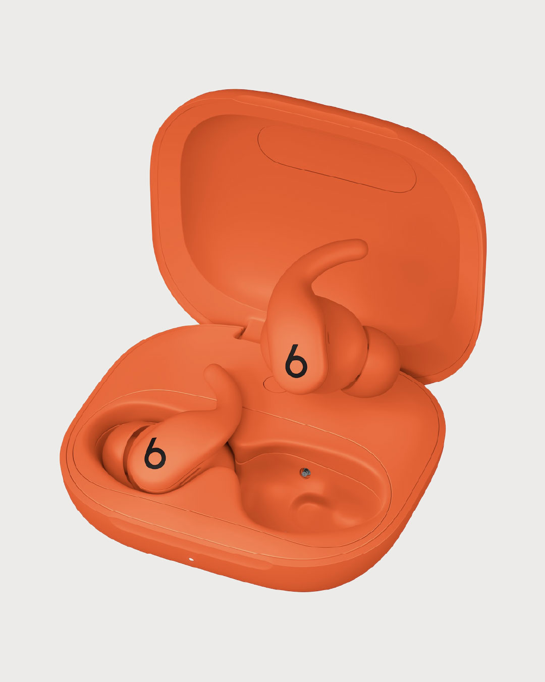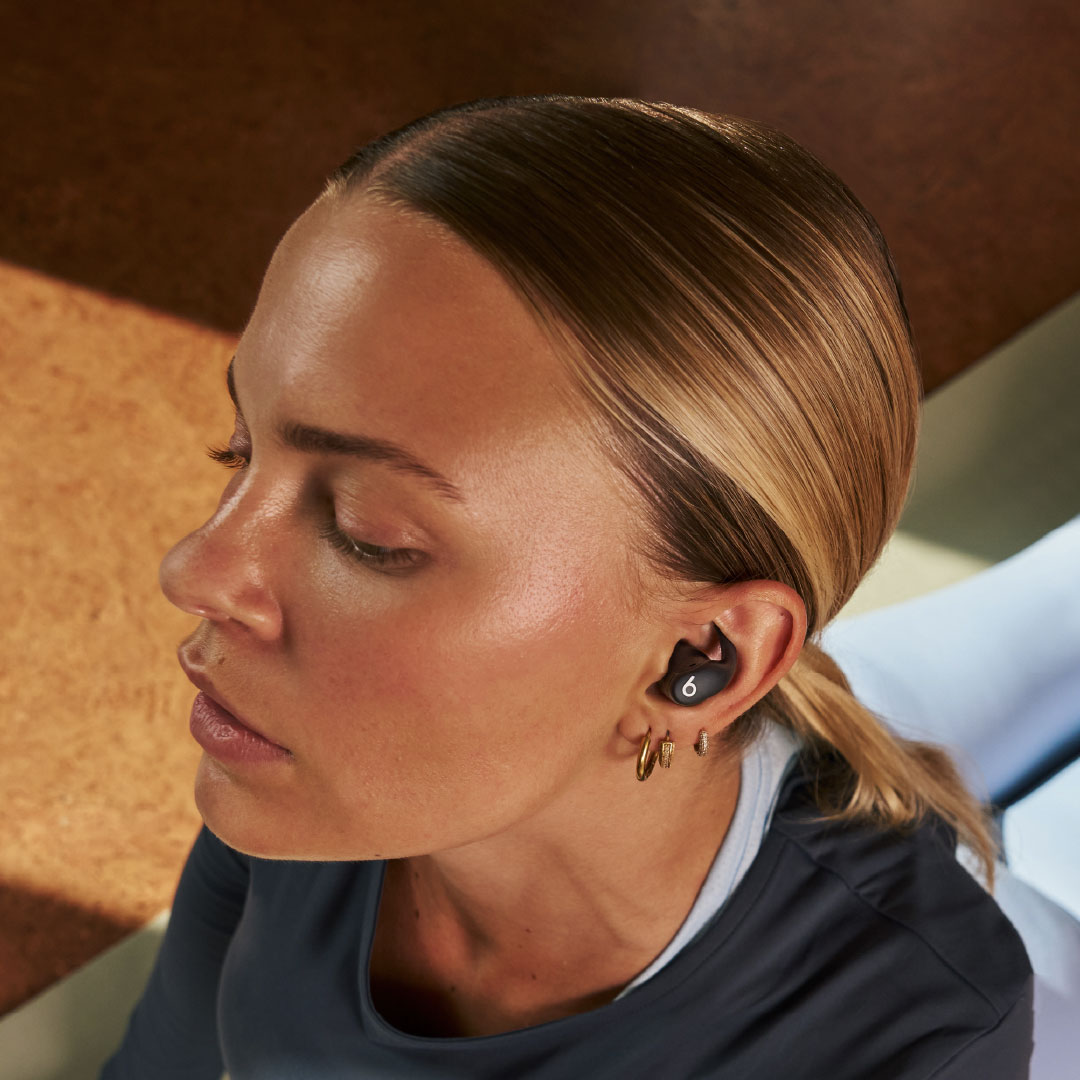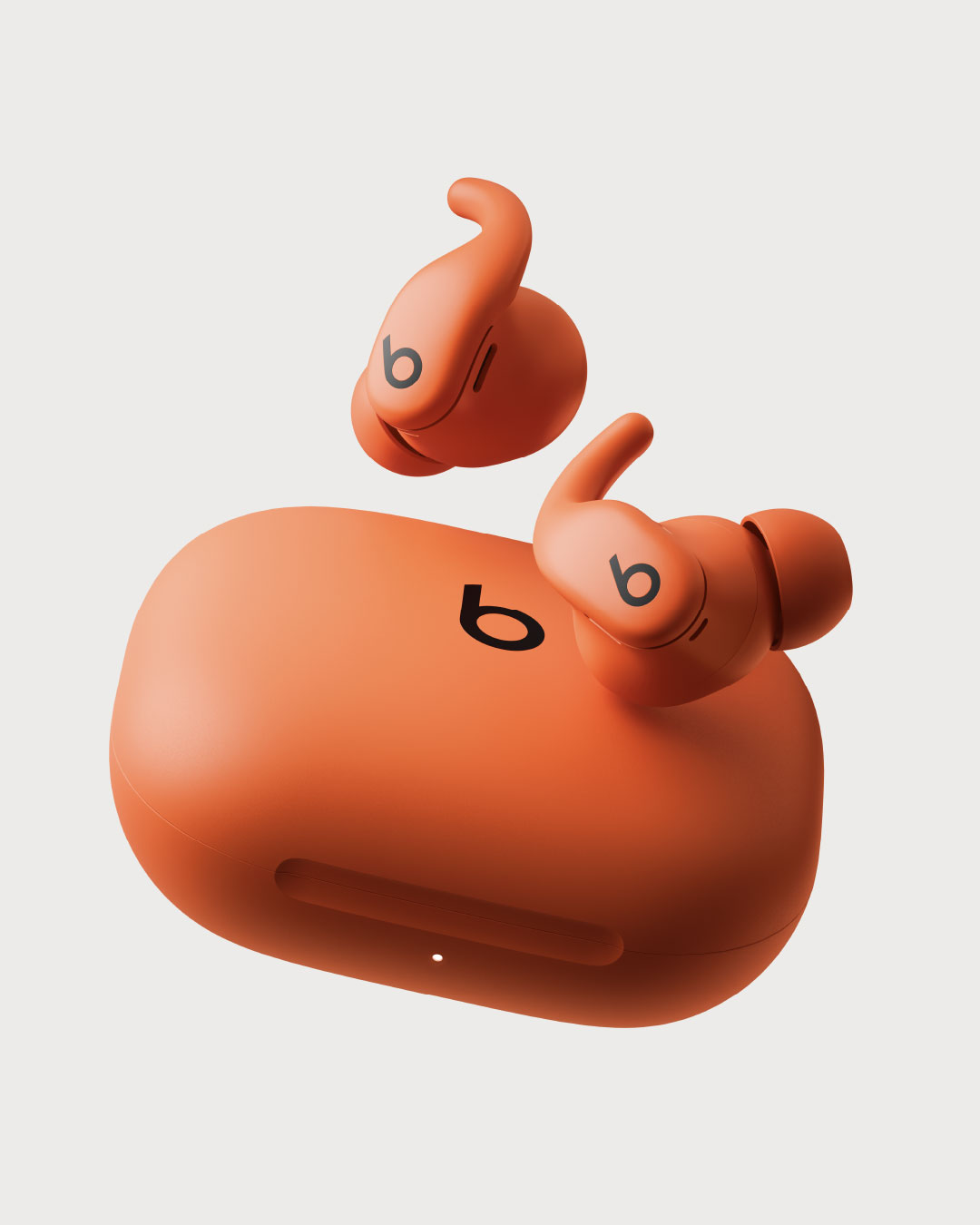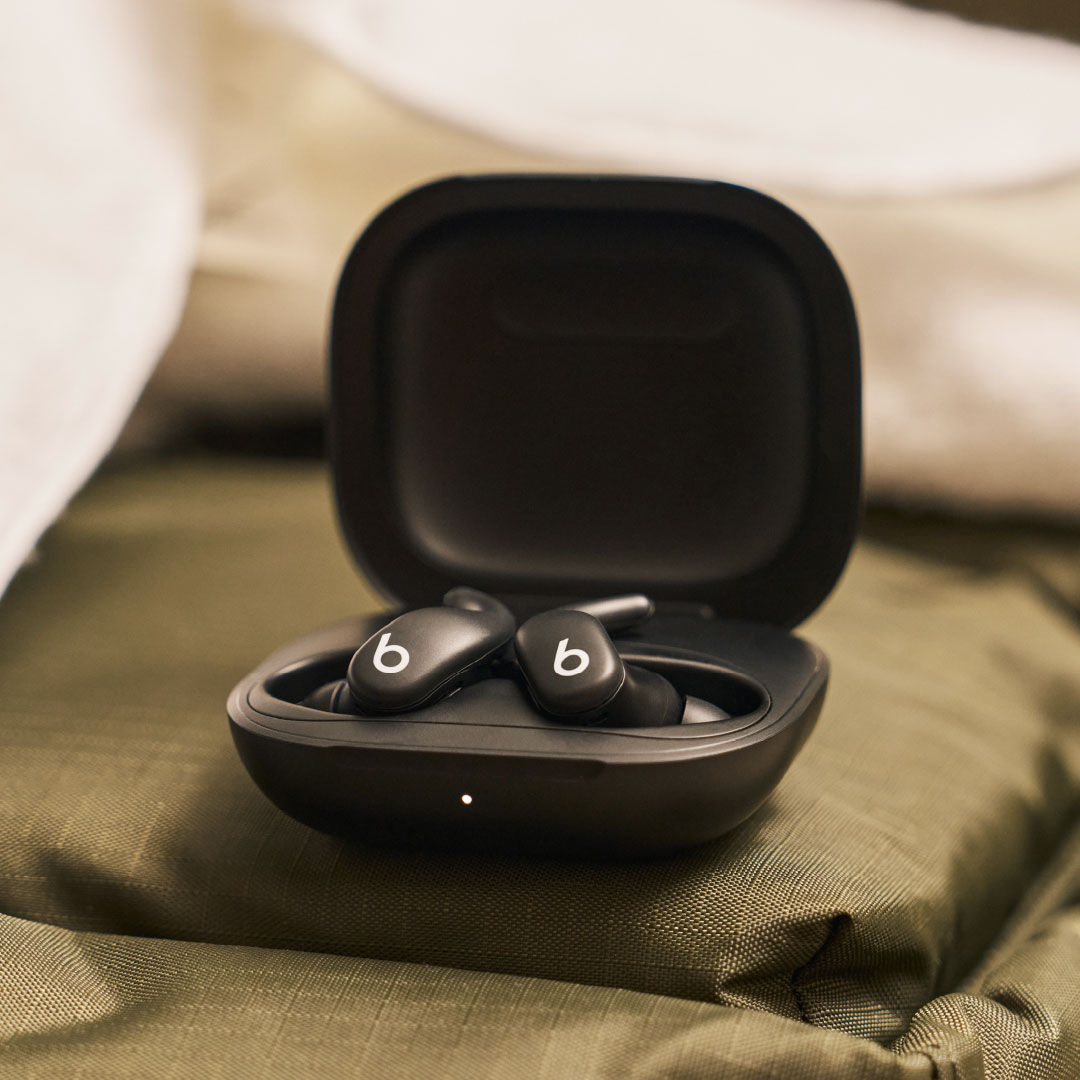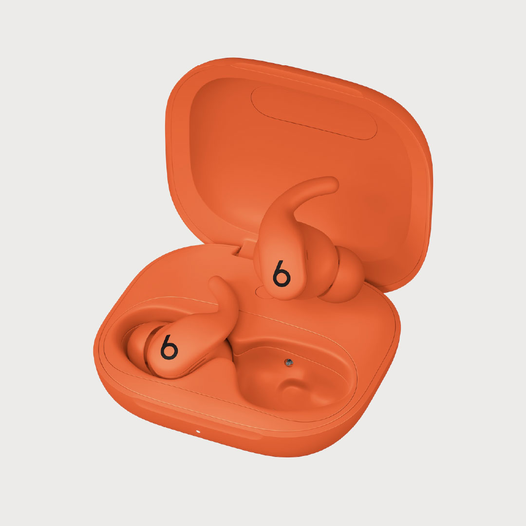 The charging case continues the industrial design language in miniature: smooth, geometric, and compact—17 percent smaller than the previous version—with tactile precision and a soft matte finish that complements the buds. Together they offer up to 30 hours of total battery life, with Fast Fuel quick-charge capability. Powerbeats Fit reflects the next evolution of Beats’ design ethos: bold, minimal, and performance-driven.